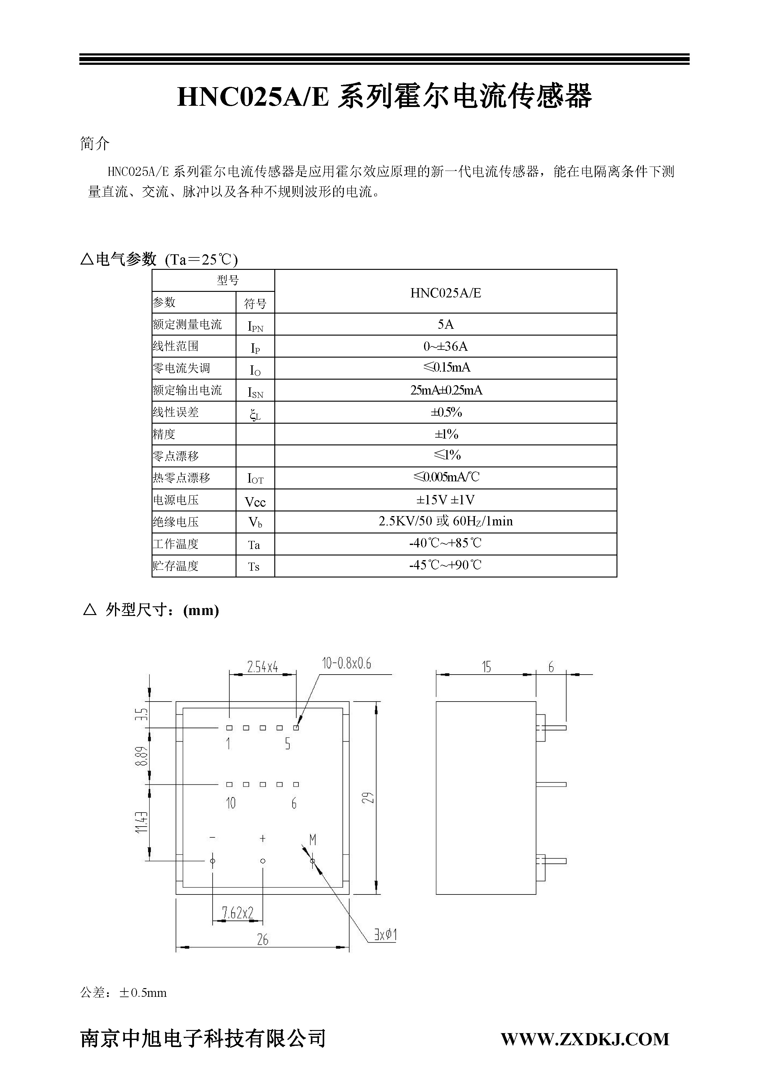HNC025A系列霍爾電流傳感器是應(yīng)用霍爾效應(yīng)原理的新一代電流傳感器,能在電隔離條件下測(cè)量直流、交流、脈沖以及各種不規(guī)則波形的電流。